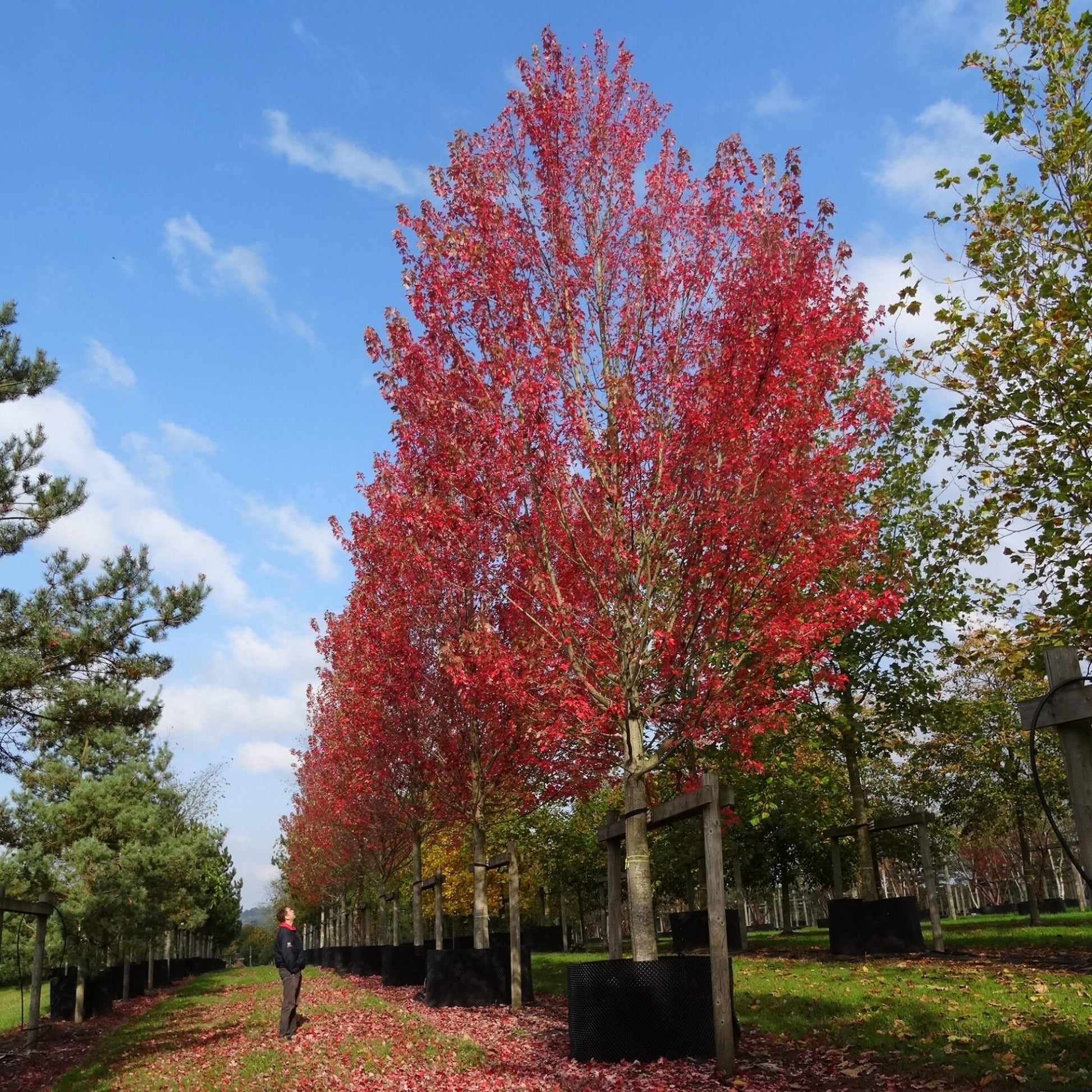 Acer x freemanii ‘Armstrong Gold’ is a hybrid maple known for its vibrant golden-yellow foliage that adds stunning color to landscapes, especially in the fall. This deciduous tree features a strong, upright growth habit and is highly resilient, making it a popular choice for urban settings and parks. Its sturdy branches and attractive form provide an appealing aesthetic throughout the seasons.