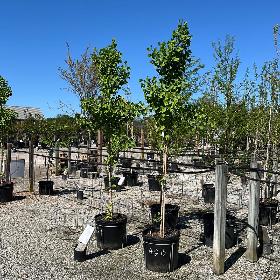 Autumn Gold is a variety of ginkgo tree known for its stunning golden-yellow foliage that appears in the fall. This deciduous tree is recognized for its fan-shaped leaves that turn vibrant hues during autumn, making it a popular ornamental tree for parks and gardens. Additionally, it is valued for its resilience, adaptability, and unique fan-shaped leaves, which provide aesthetic beauty in landscapes.