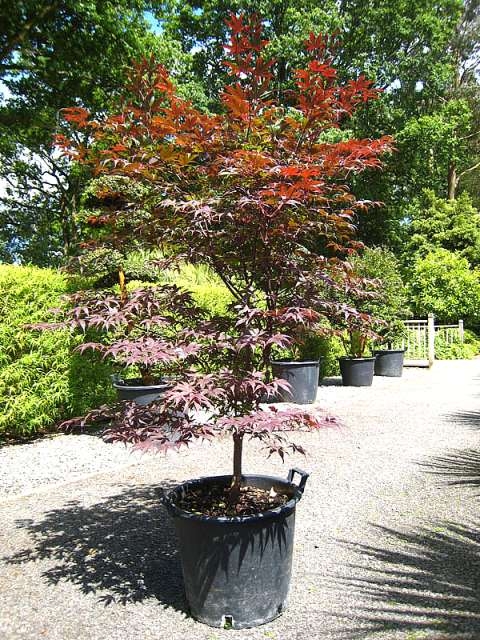 Bloodgood Japanese Maple is a popular deciduous tree known for its stunning deep red foliage that maintains its vibrant color throughout the growing season. It features a lovely, upright branching structure and offers a graceful, rounded shape, making it an excellent ornamental choice for gardens and landscapes. This tree is also valued for its adaptability to various soil types and its ability to thrive in partial shade.