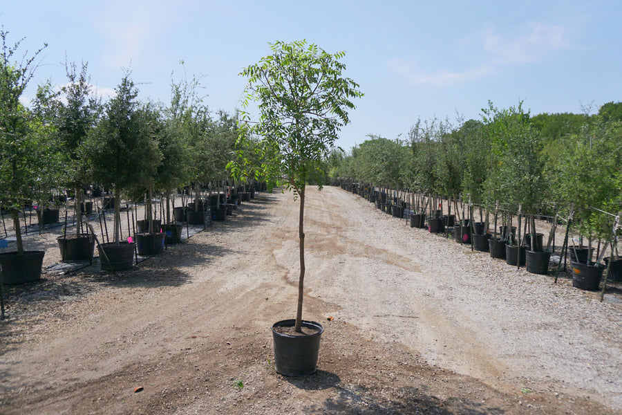 Chinese pistache, also known as Pistacia chinensis, is a deciduous tree native to Asia that exhibits vibrant fall foliage in shades of red, orange, and yellow. It is commonly used as an ornamental tree in landscaping due to its adaptability to various soil conditions and drought resistance. The tree produces small, inconspicuous flowers and can grow up to 30 feet tall, making it a popular choice for urban environments and parks.