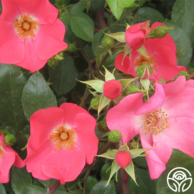 The Coral Meidiland Rose is a charming, shrub-type rose known for its vibrant coral-pink blooms that create a stunning display in gardens and landscapes. This hardy variety features a profusion of semi-double flowers with a pleasant fragrance, making it a popular choice for borders and ground cover. Additionally, it is disease-resistant and thrives in various conditions, ensuring a long-lasting presence in your garden.