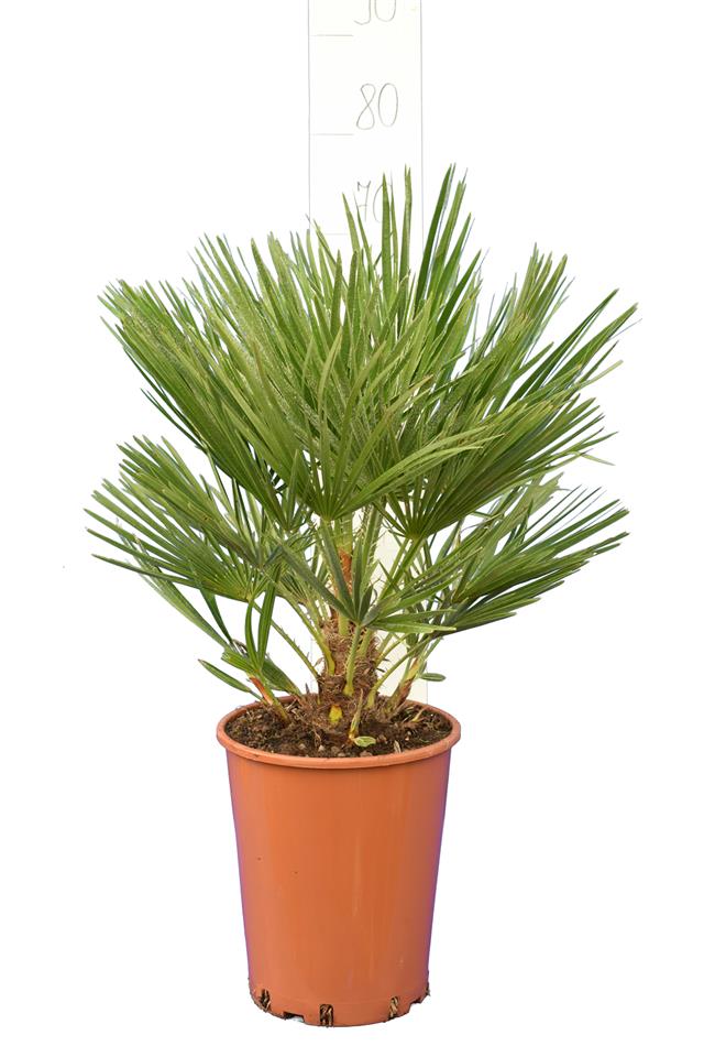 The European fan palm, also known as Chamaerops humilis, is a hardy, clumping palm native to the Mediterranean region. Characterized by its fan-shaped leaves and robustness, it often grows in sunny, dry habitats and can tolerate colder climates than many other palm species. This versatile palm is popular in landscaping for its ornamental appearance and ability to thrive in various soil types.