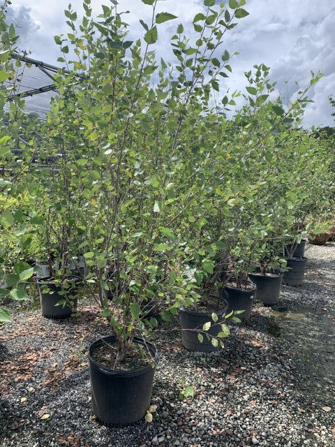 Heritage River Birch is a medium-sized deciduous tree known for its striking, peeling bark that ranges in color from cinnamon to gray. It has a graceful, multi-stemmed structure and offers vibrant fall foliage in shades of yellow. This tree is valued for its adaptability to various soil conditions and its ability to thrive in wet areas, making it a popular choice for landscapes.