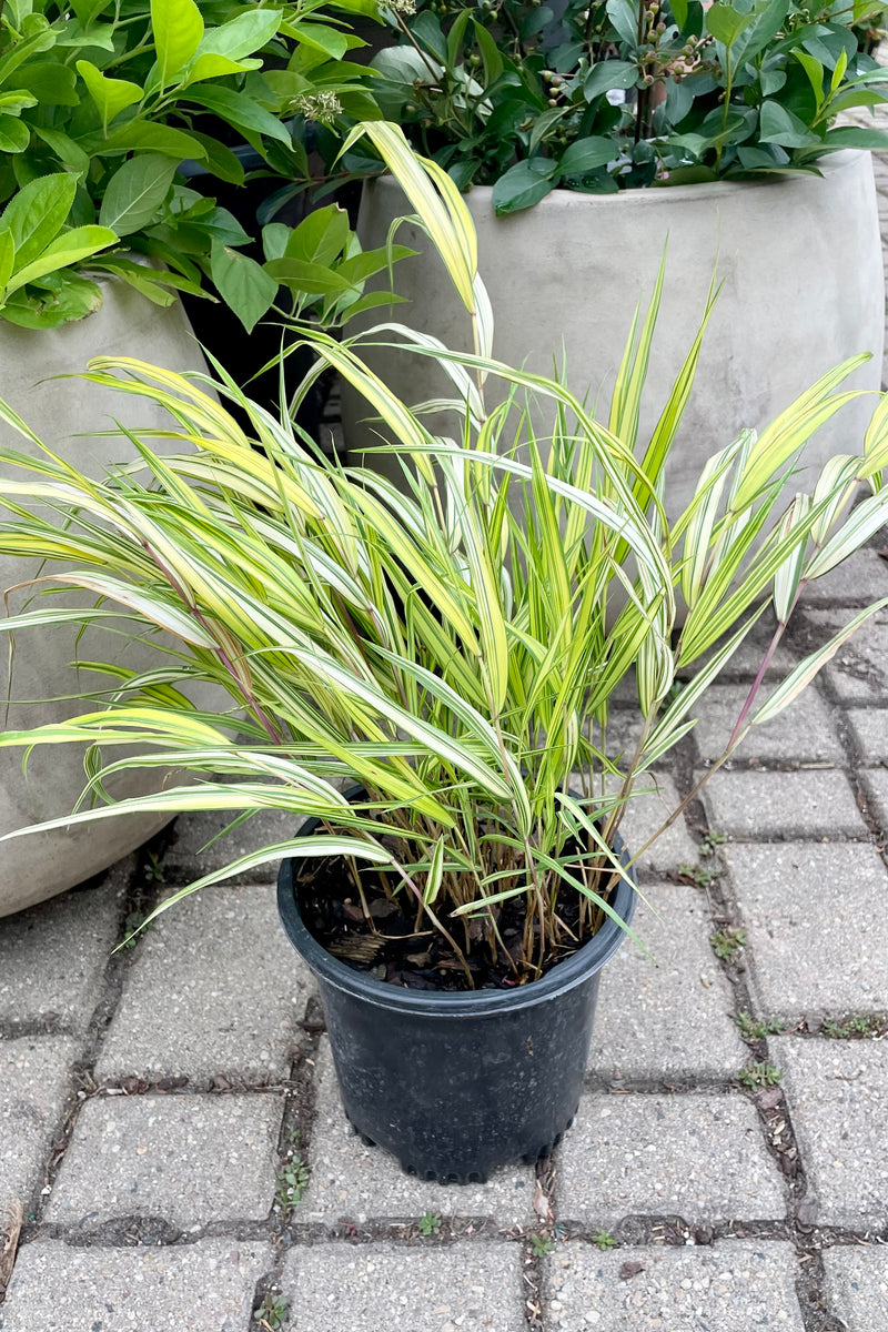 Japanese Forest Grass, also known as Hakonechloa macra, is a graceful, ornamental grass that thrives in shaded or partially shaded areas. With its arching, bamboo-like foliage that ranges from bright green to golden yellow, it adds a lush, flowing texture to gardens and landscapes. This versatile plant is often used as ground cover and is prized for its ability to tolerate moist conditions while providing seasonal interest.