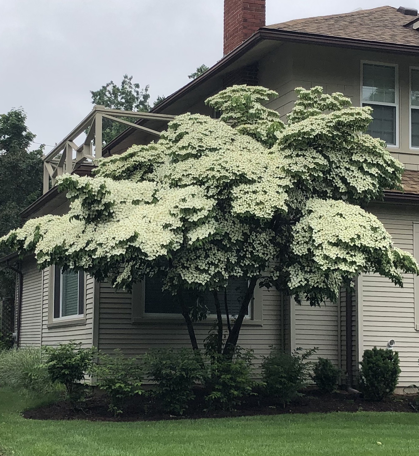 Kousa dogwood, scientifically known as Cornus kousa, is a small deciduous tree or shrub native to East Asia. It is celebrated for its stunning white to pink star-shaped flowers that bloom in late spring, followed by attractive red berries in summer. Its distinctive, layered branching structure and vibrant fall foliage make it a popular ornamental choice in gardens and landscapes.