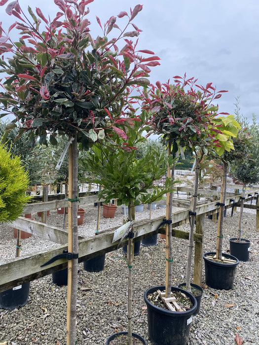 Red Tip Photinia, scientifically known as Photinia x fraseri, is a popular ornamental shrub known for its striking red young leaves that mature to a glossy green. This evergreen plant grows quickly and can reach heights of 8 to 12 feet, making it suitable for hedges and privacy screens. In spring, it produces small white flowers, which are followed by red berries, adding to its visual appeal throughout the seasons.