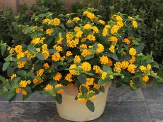Trailing yellow lantana is a hardy, low-growing perennial known for its abundant clusters of bright yellow flowers that attract butterflies and hummingbirds. This drought-tolerant plant is often used in ground cover and borders due to its vibrant color and ability to thrive in various soil types. It typically blooms from spring through fall, adding a cheerful touch to gardens and landscapes.