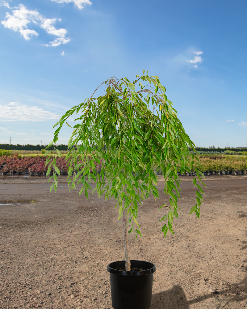 Weeping Higan Cherry is a graceful deciduous tree known for its stunning display of pink blossoms that appear in early spring. This ornamental tree features a distinctive weeping habit, with branches that cascade elegantly towards the ground. Its delicate flowers and attractive foliage make it a popular choice for gardens and parks, providing seasonal beauty and shade.