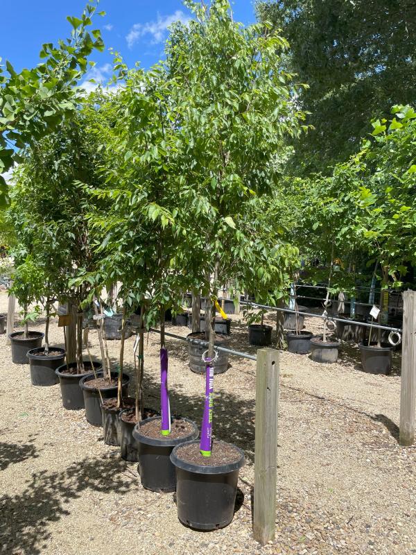 Zelkova serrata, commonly known as the Japanese zelkova, is a deciduous tree native to East Asia, particularly Japan, Korea, and China. It features a broad, rounded crown and attractive, serrated leaves that turn vibrant shades of orange and red in the fall. This tree is valued for its resilience, adaptability to urban environments, and its use in landscaping as a shade tree.